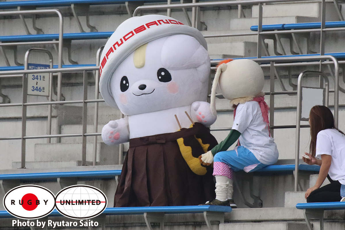 NECのトライに喜ぶさのまるくん。キミはどっちかっていうとパナソニックを応援する立場なのでは?(笑)